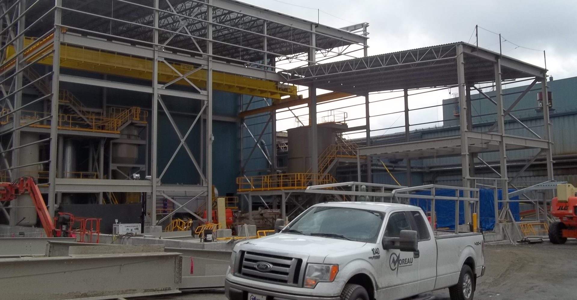 - Fourniture et installation de la structure d’acier d’une usine d’élution de 18,5M de hauteur x 33M de longueur x 26M de largeur (163 tonnes d’acier)