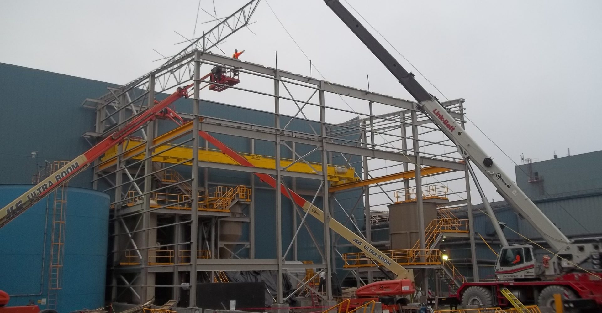 - Fourniture et installation de la structure d’acier d’une usine de remblais de 20M de hauteur x 32M de longueur x 22m de largeur (259 tonnes d’acier)